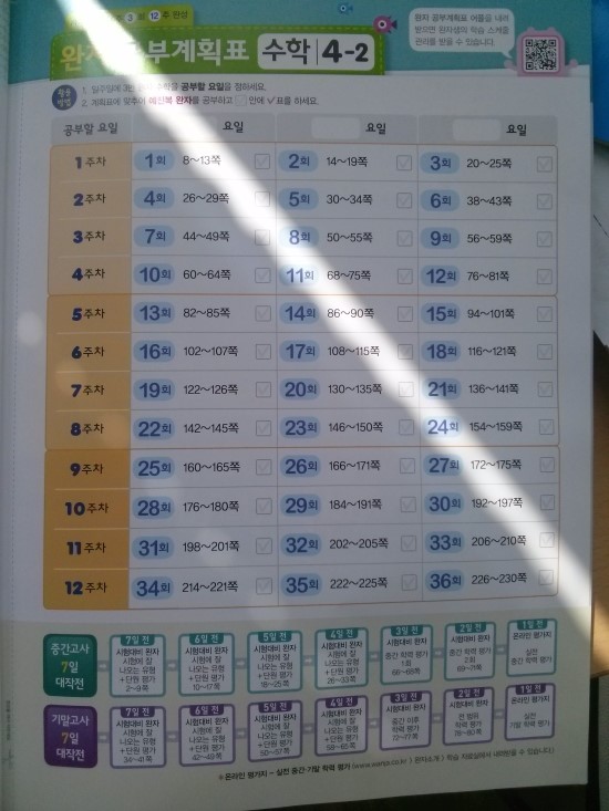첫장을 넘기니 완자 공부계획표 중간고사7일대작전