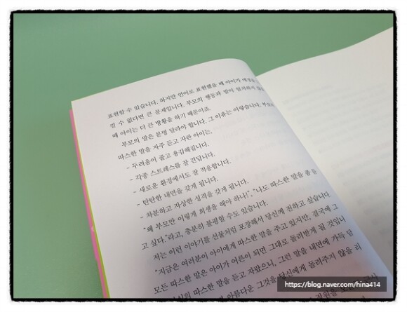 이 책은 각 상황 상황에 부모가 해줄수 있는 좋은 말, 좋은 반응, 그 말의 효과를 다시금 상기시켜준다.