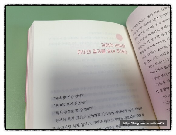 처럼 '과정의 언어'를 구사해야 아이의 지성을 움직일수 있다는 작가의 말에 다시한번 부모 교육은 끊임없이 이루어져야 한다는 걸 깨닫게 되었다.