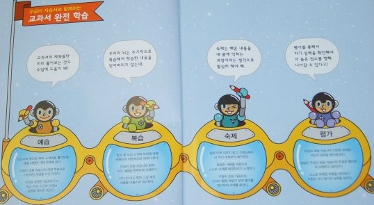 자습서의 구성은 예습-복습-숙제-평가로 이루어져 있네요