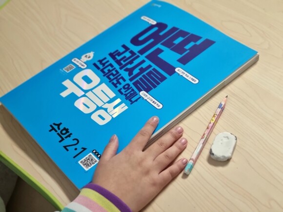아이가 초등학교에 입학한게 엊그제 같은데 벌써 2달만 지나면 9살이 되네요. 다른 과목은 걱정이 없는데 숫자의 단위가 커지면서 수학에 대한 두려움과 거부감이 생길까 싶어서 미리 선행하고자 초등수학문제집 2학년 1학기 미리 준비했어요