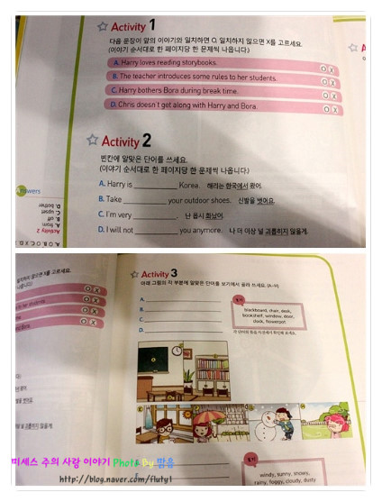 다른 아이들에 미치지는 못하겠지만 집에서라도 듣기와 읽기는 어느 정도하려고 노력하고 문장 독해도 혼자서 해보려고 노력을 많이 하더라구요.
