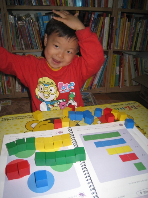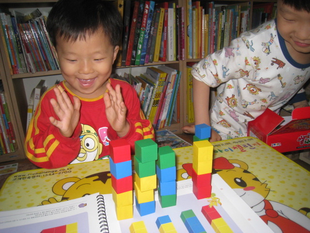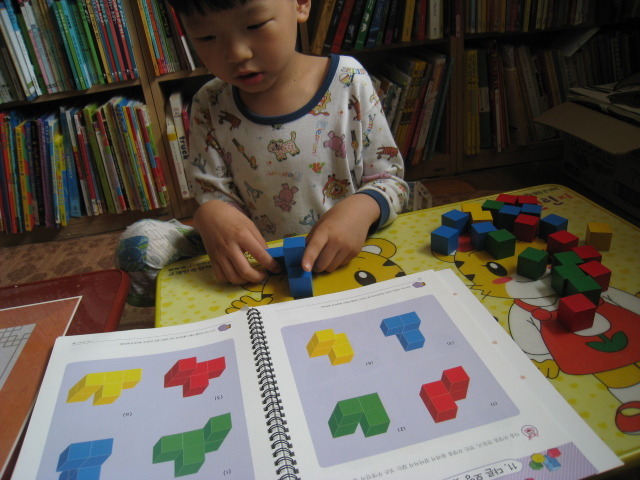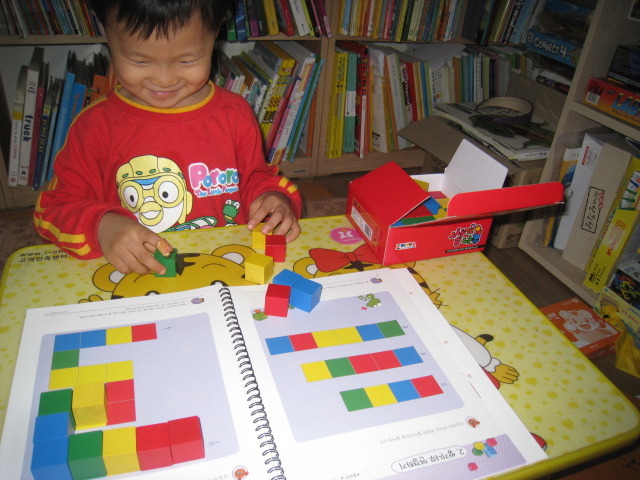 집에 쌓기 나무가 100개 있었는데, 워크북이 없으니.