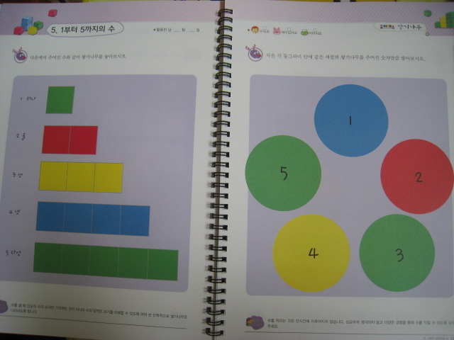 기존의 조이매스 워크북은 스프링이 아니어서 쫙 펼쳐서 그 위에 교구들 놓기가 어려웠던 반면
