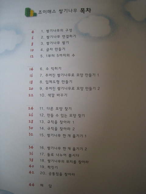조이매스 교구하면 워크북이 있어 좋은지라, 역시나 쌓기 나무도 워크북과 함께