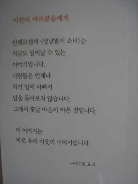 우리 아이들은 이 책으로 처음 성냥팔이 소녀 이야기를 접했습니다.