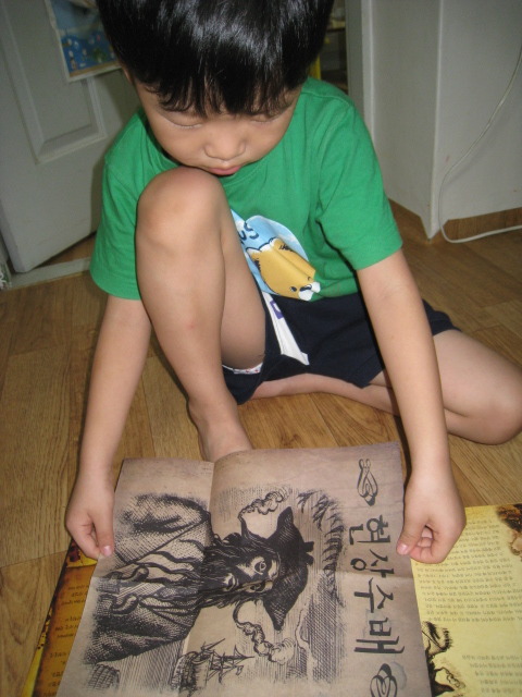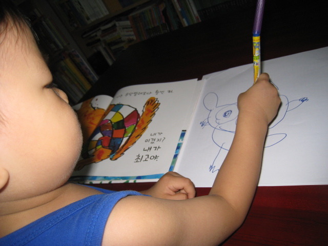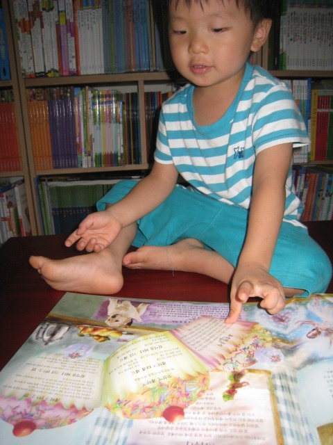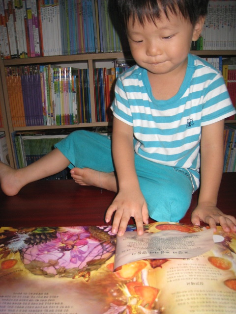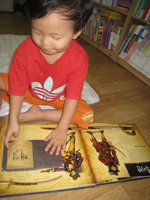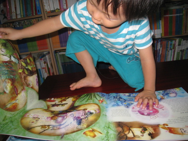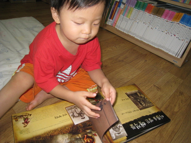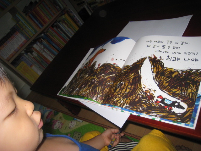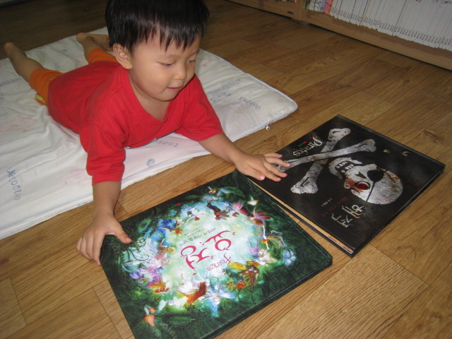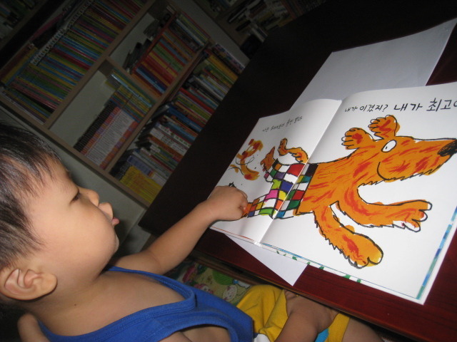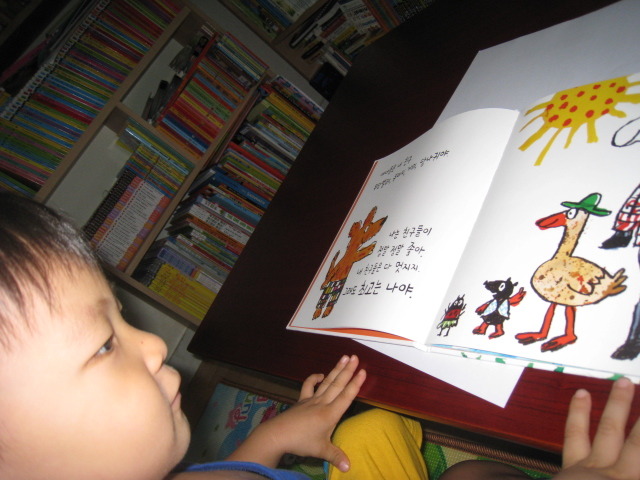 책 내용을 함께 즐기는 6살 형과는 달리, 4살 소안이는 화려하고 색감이 예쁜 책을