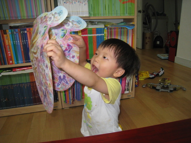 새 책이라고 친구한테 자랑하는 소민이, 요정 날개가 있다면서 또 한 번 달아서