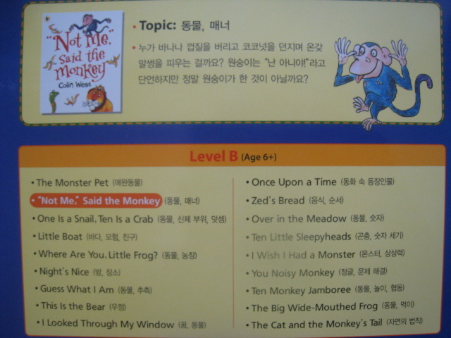 Not me said the monkey 는 두 번째 단계에 속하는 책이에요.