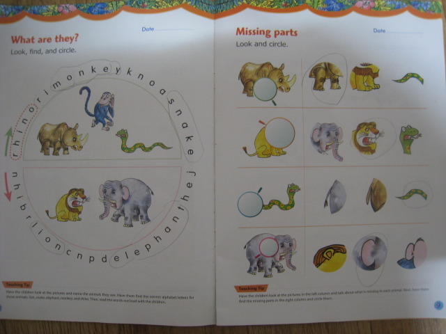 미로찾기, 연결하기, 그림보고 단어를 찾기, 빠진 부위 찾기 등등은
