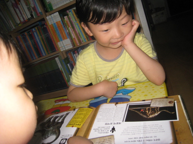 공룡 책을 읽다가 이 페이지에서는 컴터에 있는 웹캠에 비추면서