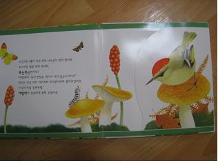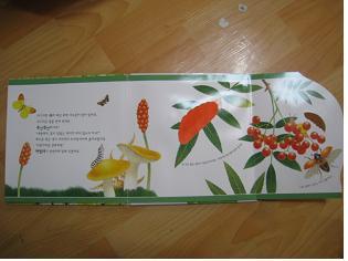 3살 소안이는 나비를 찾으면서 흥분하는 모습도 보여 주었답니다. 새를 보면서는 짹짹 거린다고 하고 말이에요. 마다 나비들이 나오는데 모양과 색이 다 달라서 보는 재미가 있어요,벌, 나비, 잠자리, 딱정 벌레, 애벌레, 여러 종류의 새, 잠자리, 다양하고 예쁜 꽃과 낙엽이 책을 참으로 풍성하게 만들고 있습니다.