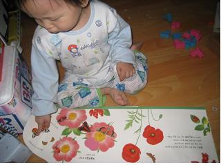 (요즘 소안이가 즐겨 이야기하며 반응하는 사물들-꽃, 새, 나비 등-이 다채롭게 등장하여서 아이에게 좋은 놀이책이 되고 있습니다. )