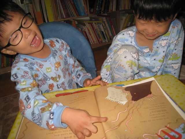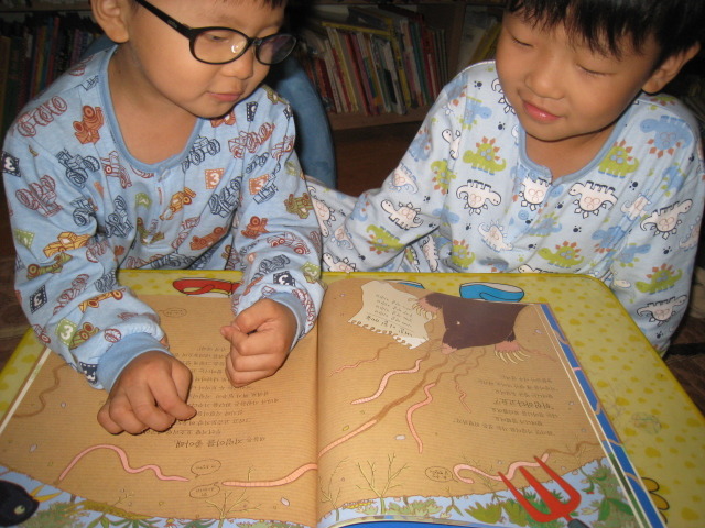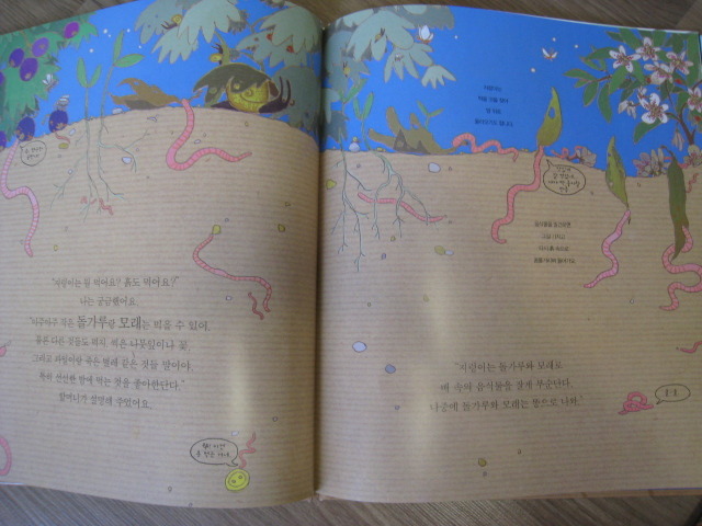 지렁이에 관해서도 재미있는 이야기였지만, 아이들은 삽화 속에 작은 곤충들에게도 관심을 많이 보였답니다.