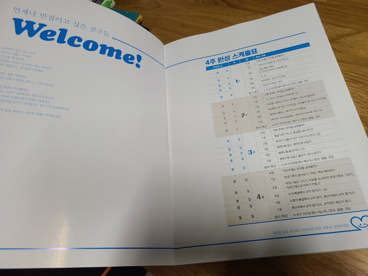 똑똑한 하루 수학을 펼치자 마자 4주 완성 스케줄표가 나옵니다.