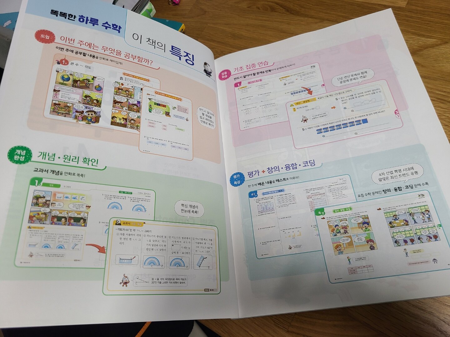 그리고 마무리로는 배운 내용을 테스트 하는 평가와 창의 융합 코딩 문제로 아이들이 생각할 수 있는 시간을 주는데요 수학을 배우면서 가장 기본은 개념이라 개념을 익히는게 중요하죠.