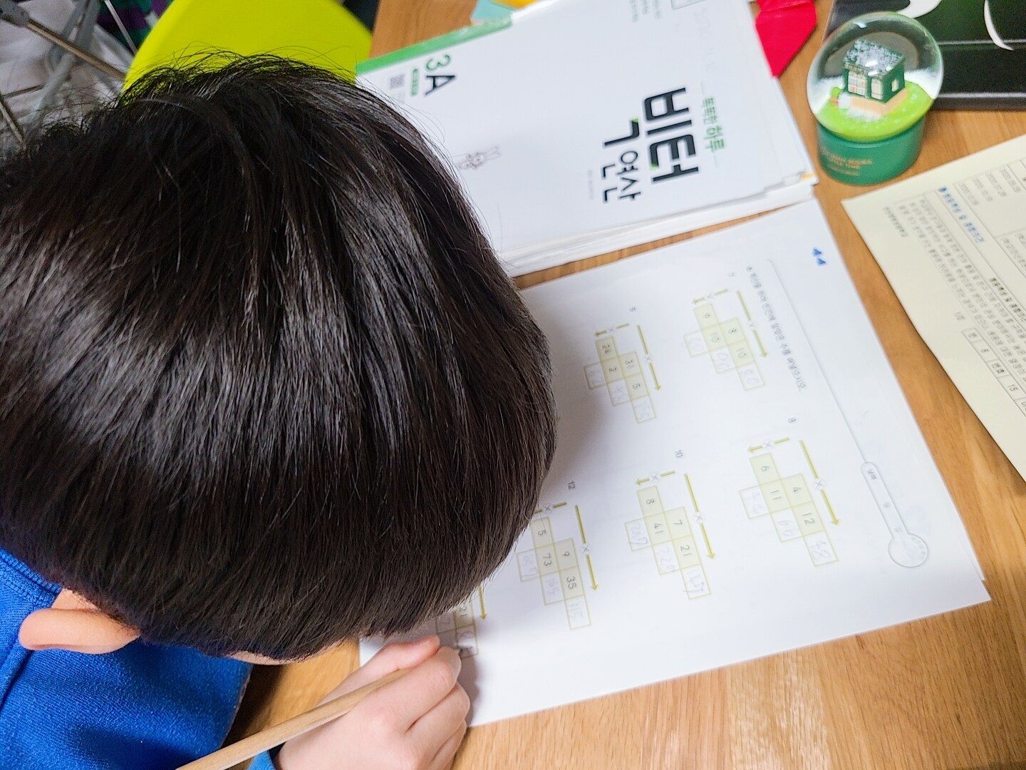 저희 아이는 연산 교재를 두 권 사용하기에 하루 2장씩은 꾸준히 하고 있습니다.