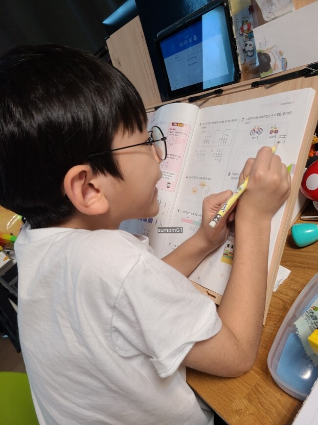 저희 아이는 엄마가 직장을 다니고 있어서라기보다는 원래 혼자 교재를 읽고 풀어요.