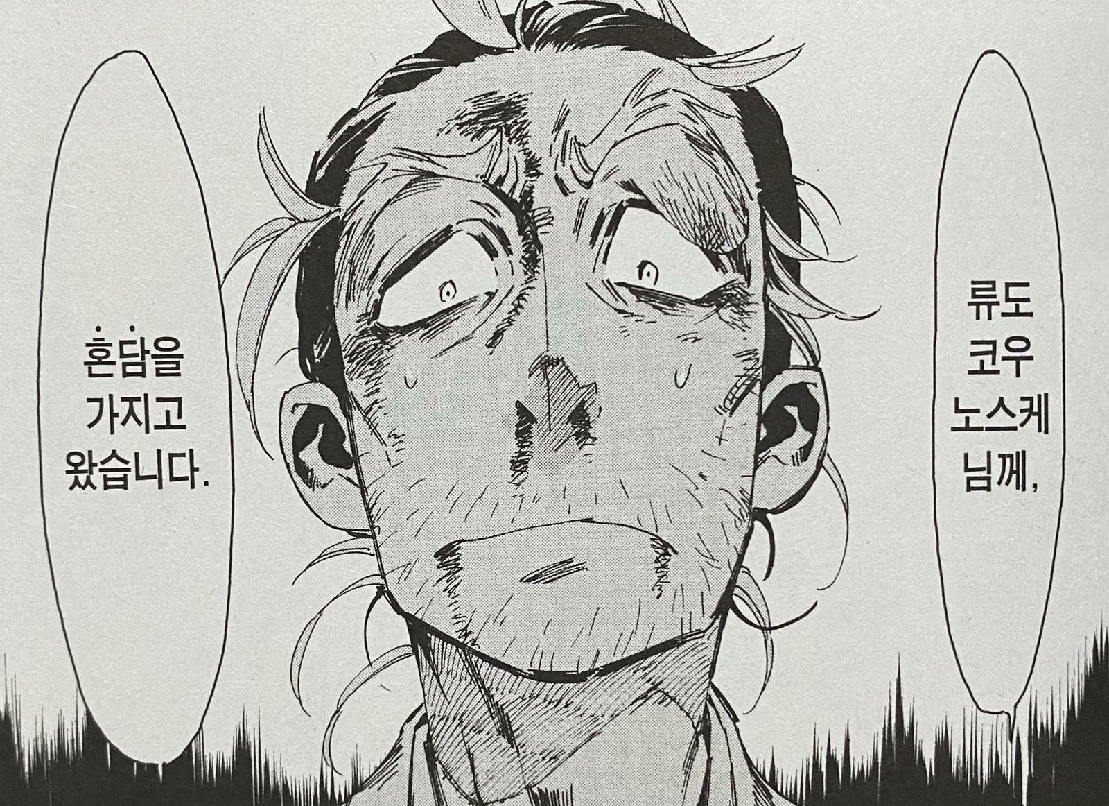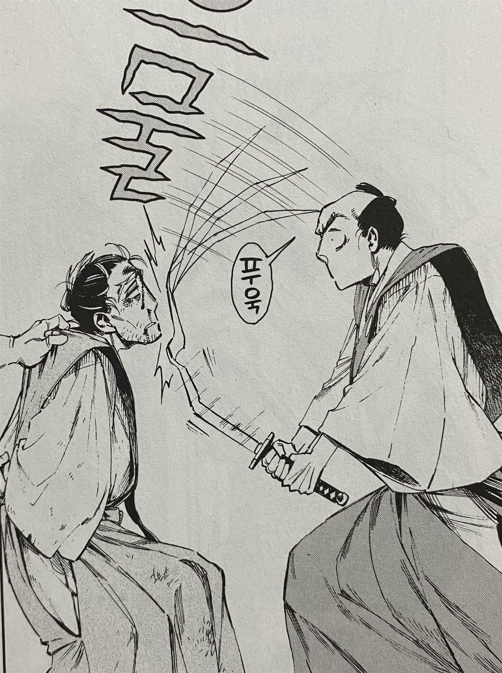 무슨이유인지 코우노스케에게 닿기도 전에 칼이 비틀어지게 됩니다