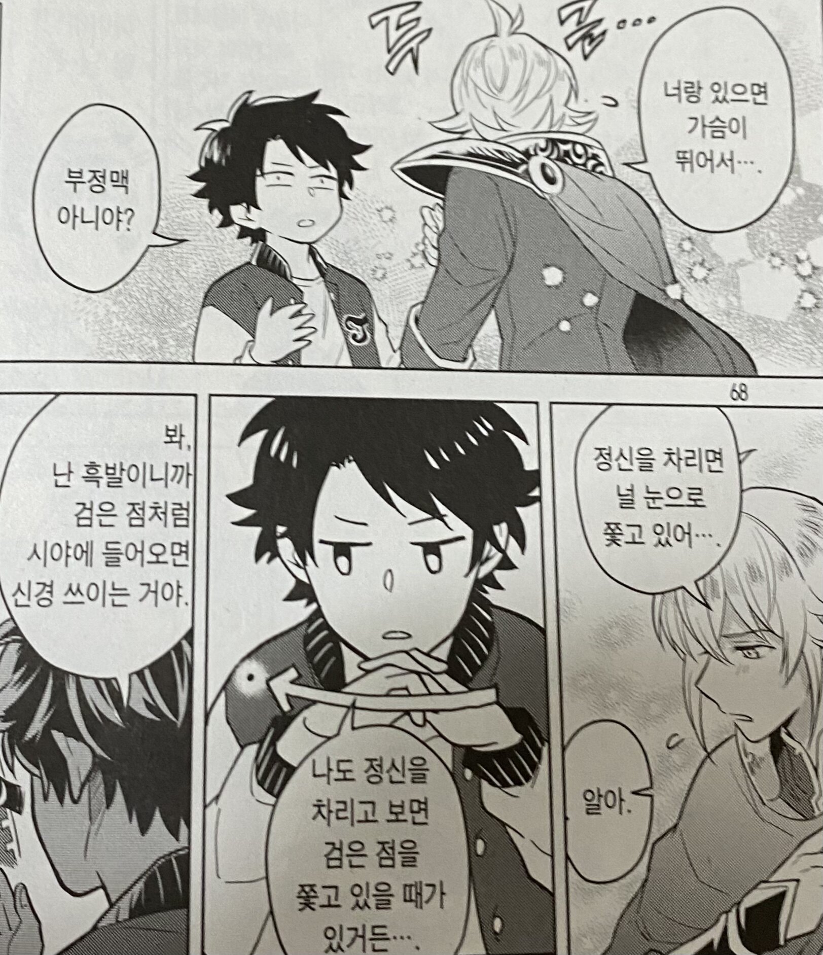마음속으로만 말하고 밖으로 내뱉지 않는 다른 순정만화 주인공과 달리 관심있다 좋아하는 거 같다는 솔직한 감정 표현이 있어서 그런지 이야기 전개의 막힘이 없는 거 같다