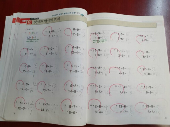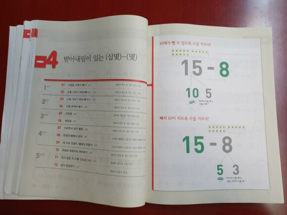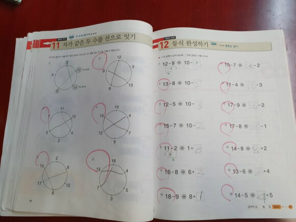 다음 단원은 받아올림이 있는 덧셈이네요. 계산식이 조금씩 복잡해지고 있는데 차근차근 하다보면 복잡하다 느끼지 않고 어렵다 느끼지도 않으며 잘 할 수 있을 듯해요.