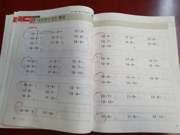차가 같은 두 수를 이어 보는데 퍼즐을 푸는 느낌일 것 같기도 하고 생각하며 풀어서 선을 이어 답을 맞추니 재미있는 문제로 느껴질 듯해요.