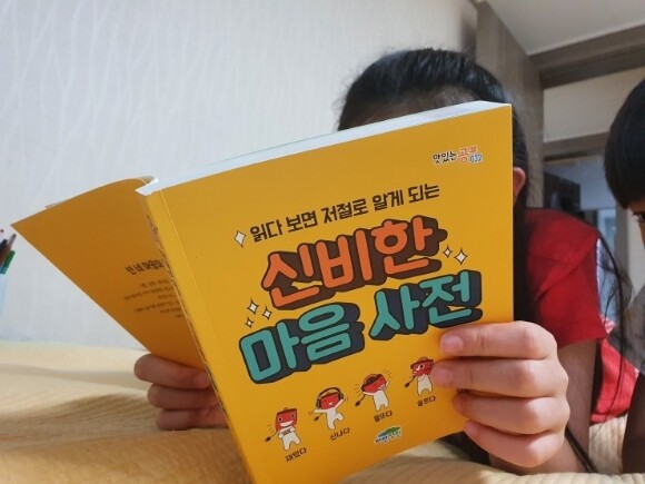 아이들이 다양한 감정을 느끼지만 적절히 표현할 언어를 몰라서 전달을 잘 못할 경우가 있다고 생각해요. 학교를 다니는 것도 아니고 집에만 있다보니 더더욱 감정소통에 대한 표현방법을 배울 기회가 부족한 것 같습니다. 그래서 마음사전이 필요하다고 생각하여 아이들에게 읽어보라고 했어요.