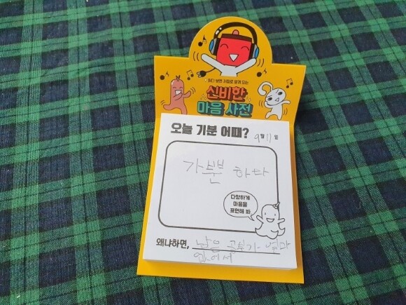 책과 함께 오늘 기분을 쓸 수 있는 메모지도 함께 도착했어요. 메모지에 표현해보는 방법도 아주 신선한 것 같아요. 어떤 단어를 적을지 좀 더 기분을 세심하게 느껴보게 되더라구요.