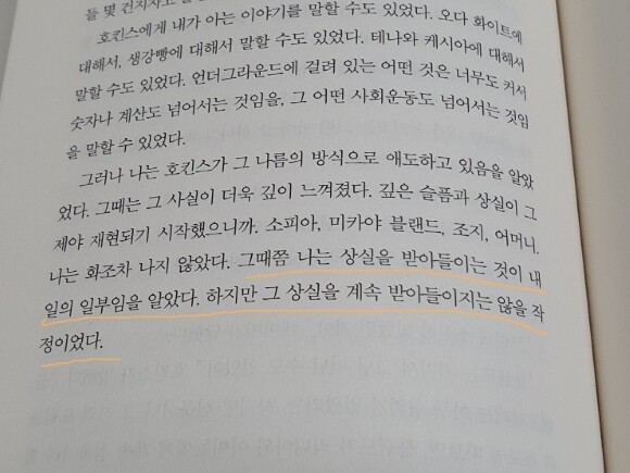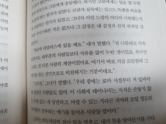 상실을 받아들여야하는 것도 노예들의 몫. 그 상실을 계속 받아들이지는 않을 작정이라는 하이람에게 용기와 응원을 보내며 끝까지 읽어나간 소설이다.
