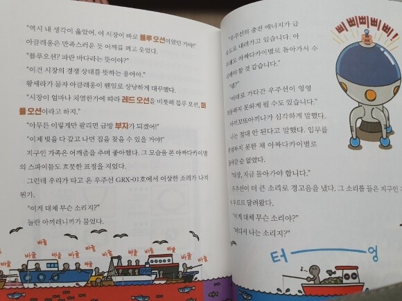 마지막 장은 창업에 관한 이야기였습니다. 벤치마킹, 재료비, 인건비, 벤처기업, 기대수익, 블루오션, 레드오션, 퍼플오션 등 저도 헷갈리는 다양한 경제용어들을 접할 수 있었습니다. 생소한 단어들이 많아서 그랬는지 책을 읽는 동안 집중해서 천천히 읽더라구요.