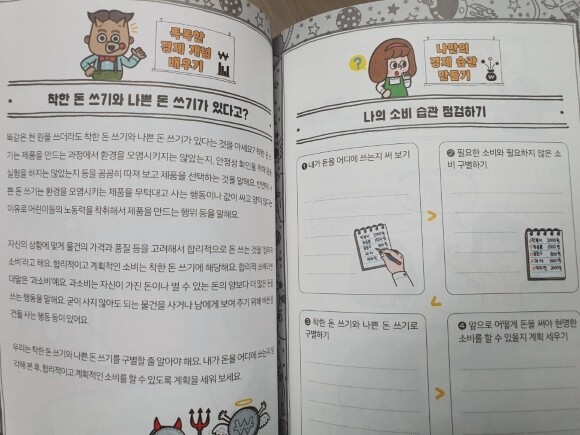 착한 돈 쓰기와 나쁜 돈 쓰기, 용돈관리, 저축의 종류, 통장이란?, 어린이 주식투자 등을 배울 수 있고,