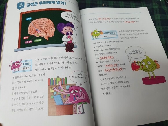 각 장마다 생각특공대라는 부분이 있어서 지식을 보강 설명해줍니다. 어려울 수도 있는 단어들이 등장하지만 앞에서 읽은 이야기를 통해 어떤 이야기를 하려는건지 유추가 되기도 하고 각 뇌의 기관에 대해 설명을 쉽게 해놓아서 이해하는데 어려움은 없어요. 오히려 이런 뇌의 기관 명칭들을 통해 뇌에 대한 관심을 더 가지게 만드는 계기가 되는 듯 합니다.