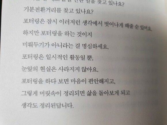 한 문장의 글이 저에게 "너 그러고 살고 있어!" 라고 말하는 것만 같았어요. 보이기 위한 나. 남에게 어떻게 보일까 생각하며 살아온 지난 날이 너무 힘들어서 지금은 많이 내려놨지만 그래도 과연 이게 내 모습일까 하는 생각이 들때가 많아요.