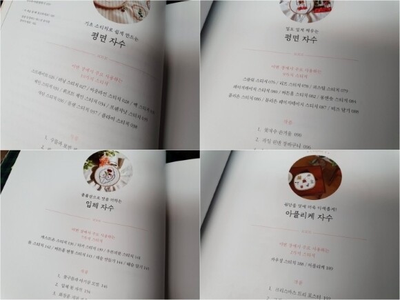 차례를 보면 평면자수, 입체자수, 아플리케자수로 나뉘어서 나옵니다. 제가 해본 것은 밀도 있게 채우는 평면자수인 것 같네요.