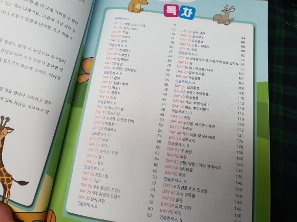 목차를 보니 <초등 영단어 완전정복> 이랑 조금 겹칩니다. 하지만 초등 영단어 완전정복은 2000단어이고 <초등 필수 영단어 따라 쓰기 900>은 900단어에요. 필수 영단어이기 때문에 900단어로 줄었나봐요. 60일 분량입니다. 두세달이면 900단어를 외울 수 있겠네요.