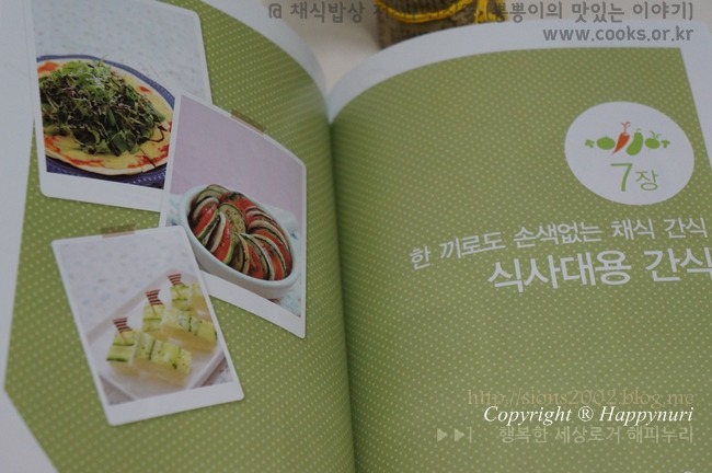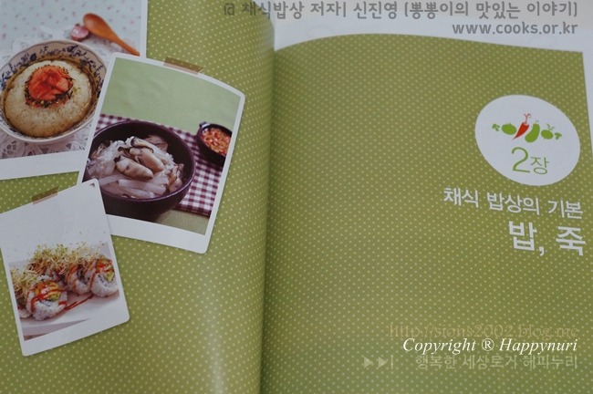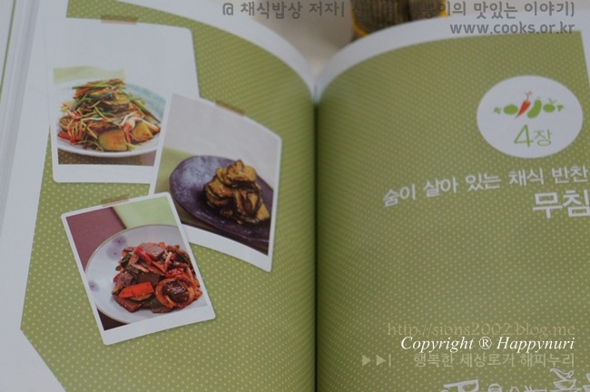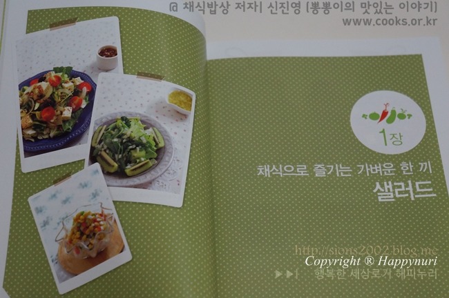하루라도 건강하게 살고 싶으신가요? 건강하고 싶다면, 채식밥상 !! 정갈하게 안내해 드릴거에요~ 출간된 지 얼마 안된 도서의 서평인 관계로 각 쳅터별 소개는 평범한 요리들 가운데서 일부만 보여드리는 바입니다.
