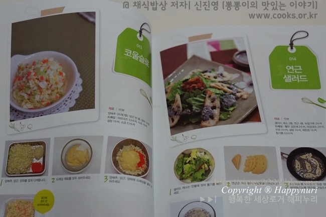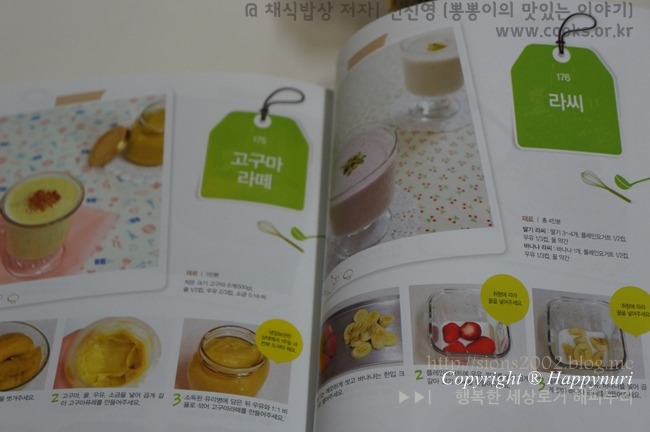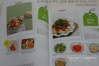 요리를 정갈하게 하고 싶다!! 정신산만한 레시피에서 탈피하고 싶다면, 『채식밥상』을 읽어보세요!~ 정성을 담은 건강레시피 들로 알차게 채워져 있습니다. 첫 출간인 만큼, 더욱 다채로운 시리즈물들로 이어지겠지만, 옥의 티를 꼽자면 124페이지를 펼쳤을때 책이 뚝 스트레칭 한다는것 정도에요! 책속의 요리를 준비하는 데 드는 재료들이 손쉽게 구할 수 있어, 나홀로 자취생이나 결혼전 요리익히고 싶은 예신에게 탁월한 책이에요. 간단해보이지만, 요리의 기본기를 쉽게 터득할 수 있어 흥미가 새록해 질거에요. 과욕하면 그만큼 요리의 맛은 공중분해 되기 쉽겠죠. 아낌없이 추천할 수 있는 요리서적이 있다면, 『채식밥상』에요. 오랜만에 맛깔스런 음식들을 마주하고 서평소감 나누니 아낌없는 선물 받는 느낌 이에요.