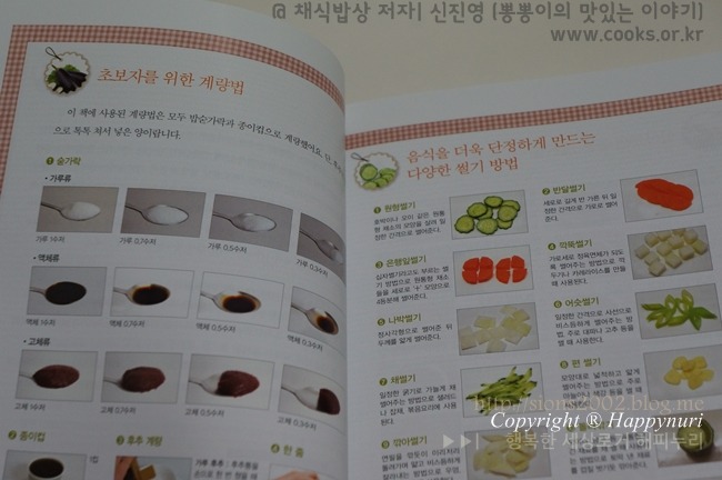 채식밥상을 출간한 신진영 님의 경우에도 대학졸업이후의 자취생활에서 요리를 터득하기 시작합니다. 대체로 결혼이전의 미혼여성 상당수가 아무것도 할 엄두가 안난것 처럼요! 요리에 무관할 것 같은 남자에게도 마찬가지입니다. 군생활 이전에 커피믹스의 물농도도 제대로 조절하지 못했던 해피누리는, 취사 1개월의 생활을 거치니 어느 정도의 요리에 대한 감각이 생기더군요. 현란한 칼질을 동반해서도 아닌... 어떻게 하면 오묘한 음식의 맛으로 나 스스로를 만족시키고, 대접받는 이를 감동시킬 수 있을까? 하는 관심이 더해집니다.