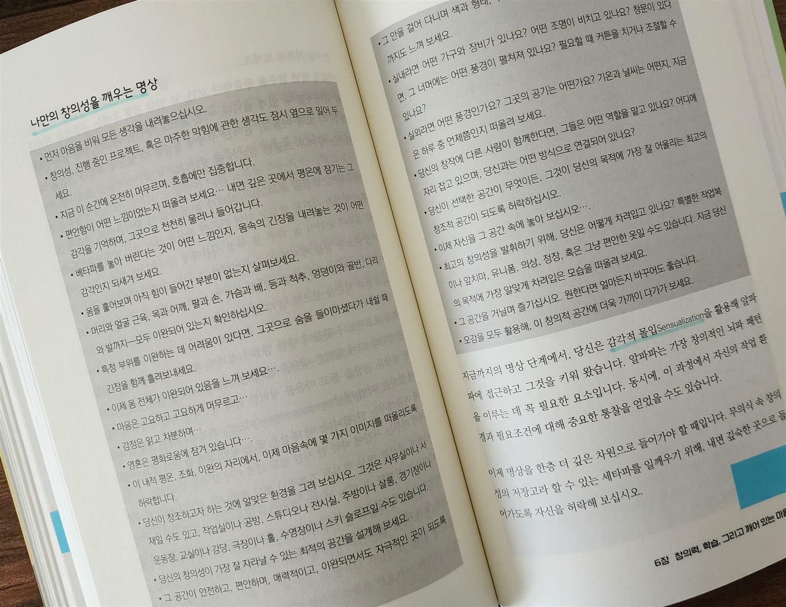 책에 소개된 이완 훈련과 창의성 명상 역시 복잡하지 않지만 꾸준히 실천할 경우 내면을 깊이 들여다보는 계기를 마련해 준다. 이러한 과정은 마음을 비우는 데서 멈추지 않고, 우리 안에 잠재된 사고력과 통찰을 자연스럽게 끌어올리는 역할을 한다.