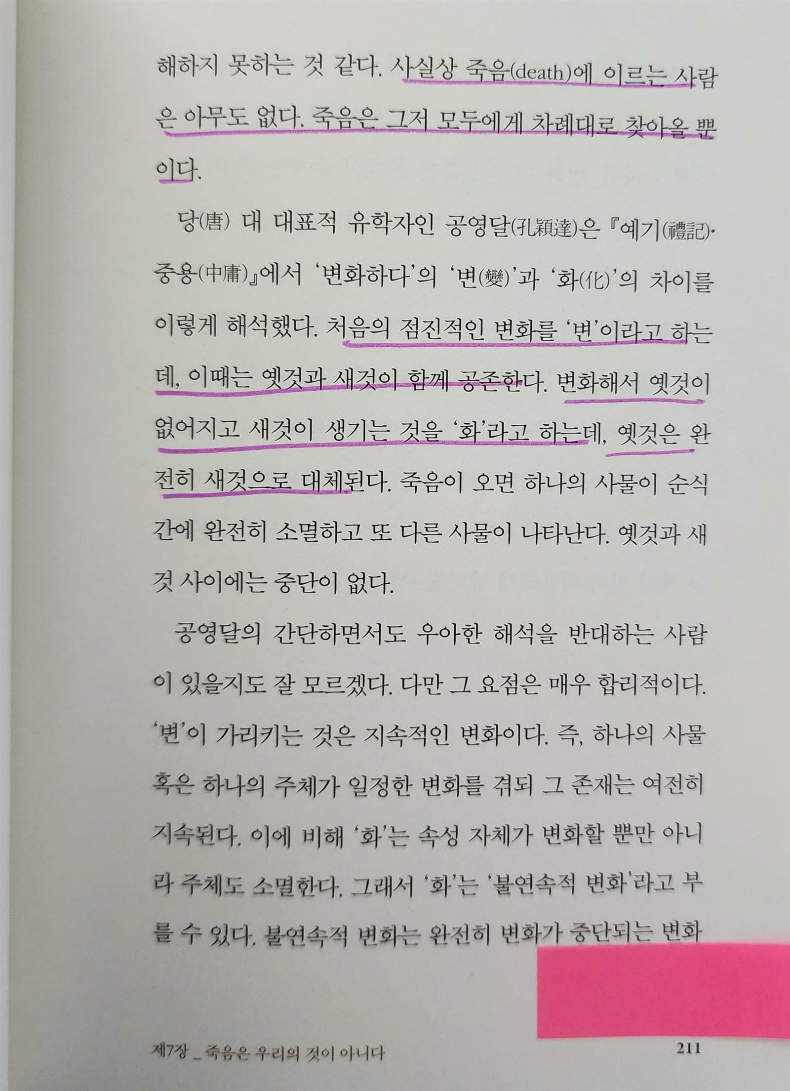 <"사실상 죽음(death)에 이르는 사람은 아무도 없다. 죽음은 그저 모두에게 차례대로 찾아올 뿐이다." 책 211쪽>