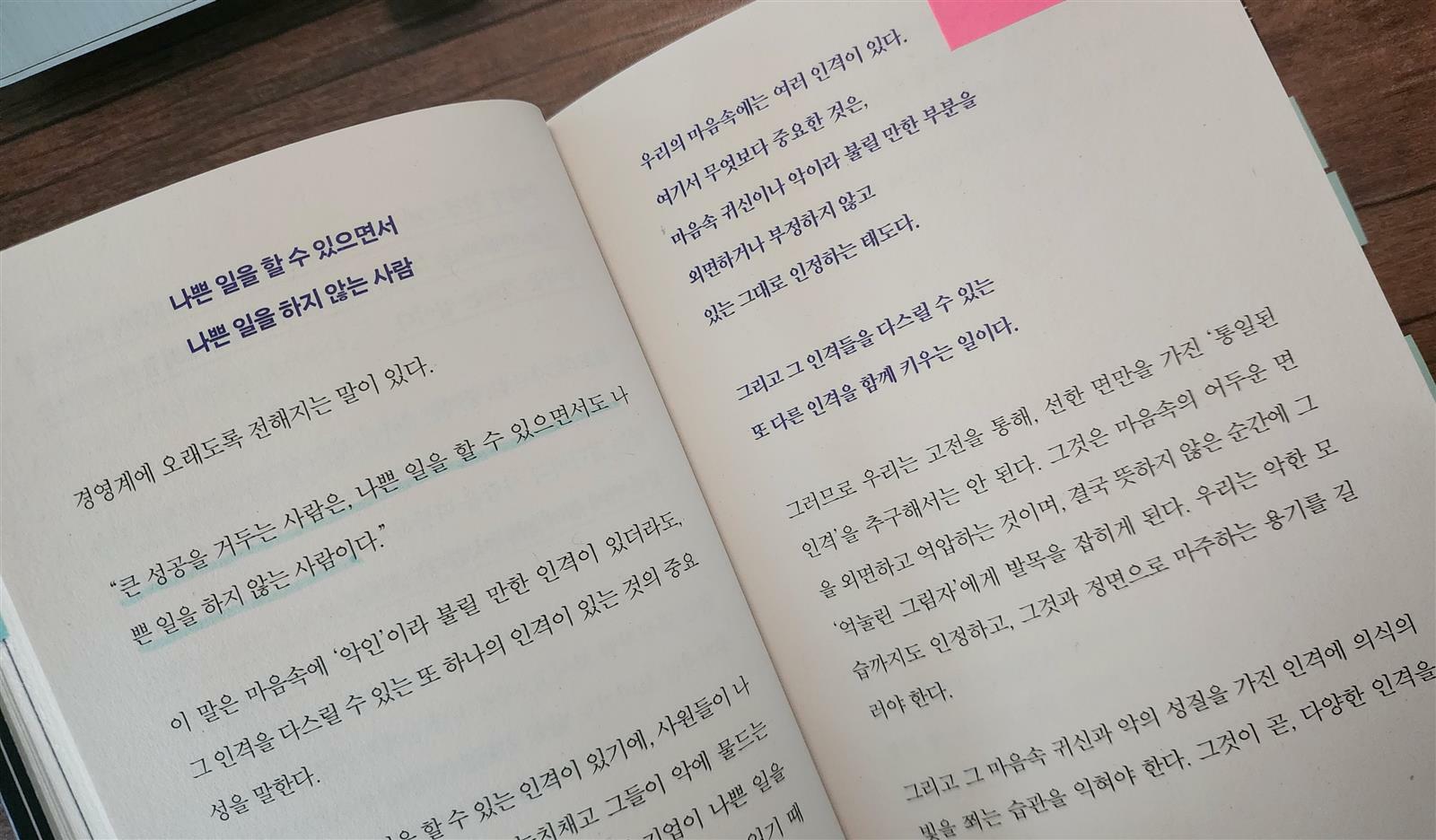 <"큰 성공을 거두는 사람은, 나쁜 일을 할 수 있으면서도 나쁜 일을 하지 않는 사람이다." 책 42쪽>