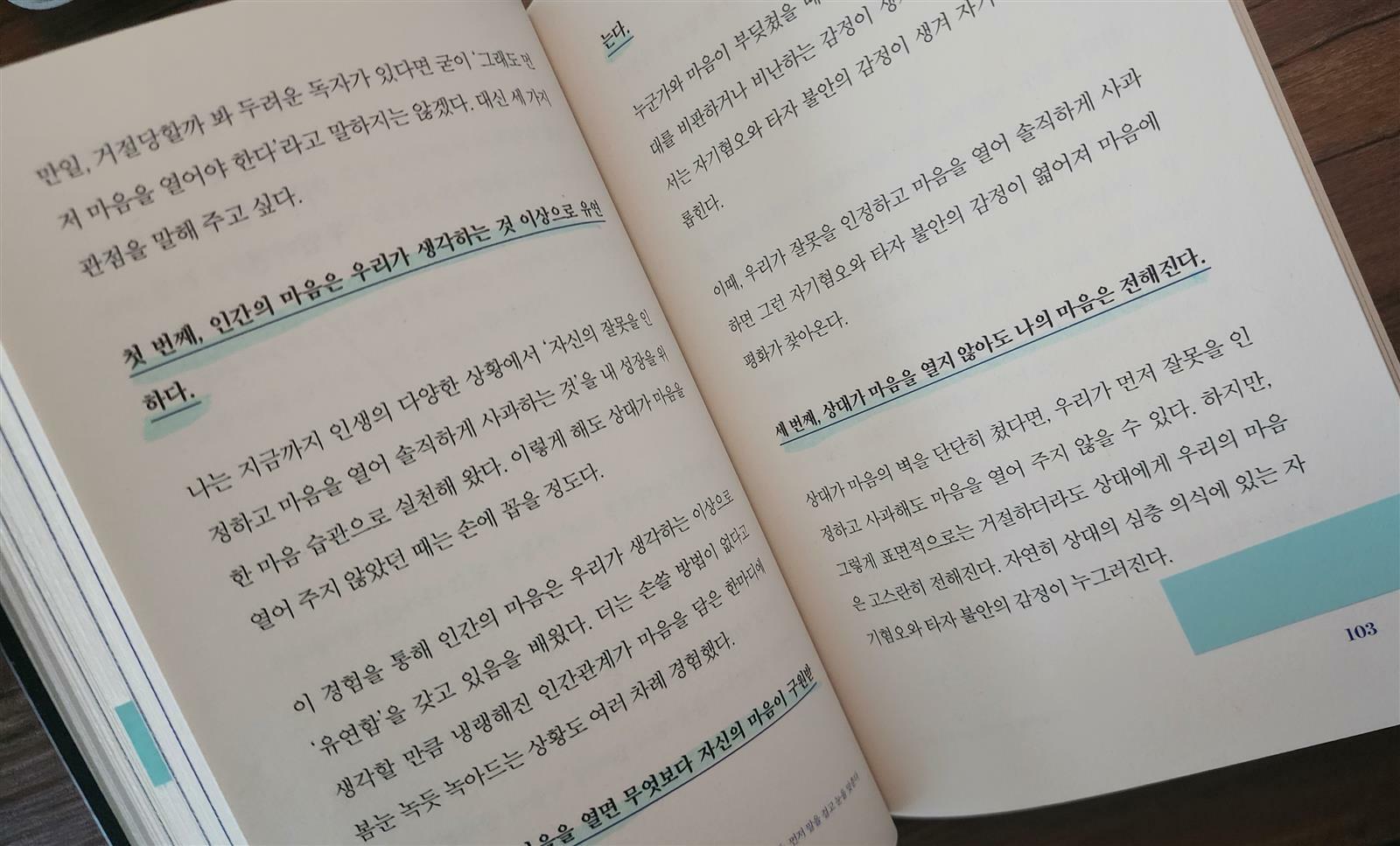 또한 인상적인 부분은 ‘보이지 않는 힘’에 대한 강조다. 말과 행동 이전에 존재하는 마음의 상태, 즉 상대를 진심으로 이해하려는 태도와 스스로를 끊임없이 성찰하는 자세가 결국 인간관계의 깊이를 결정한다는 통찰은 깊은 울림을 남긴다. 저자는 리더십 역시 지위나 권한이 아닌 ‘영향력’으로 정의하며, 그 영향력은 타인을 바꾸려는 의지가 아니라 자기 자신을 바로 세우는 데서 비롯된다고 설명한다.