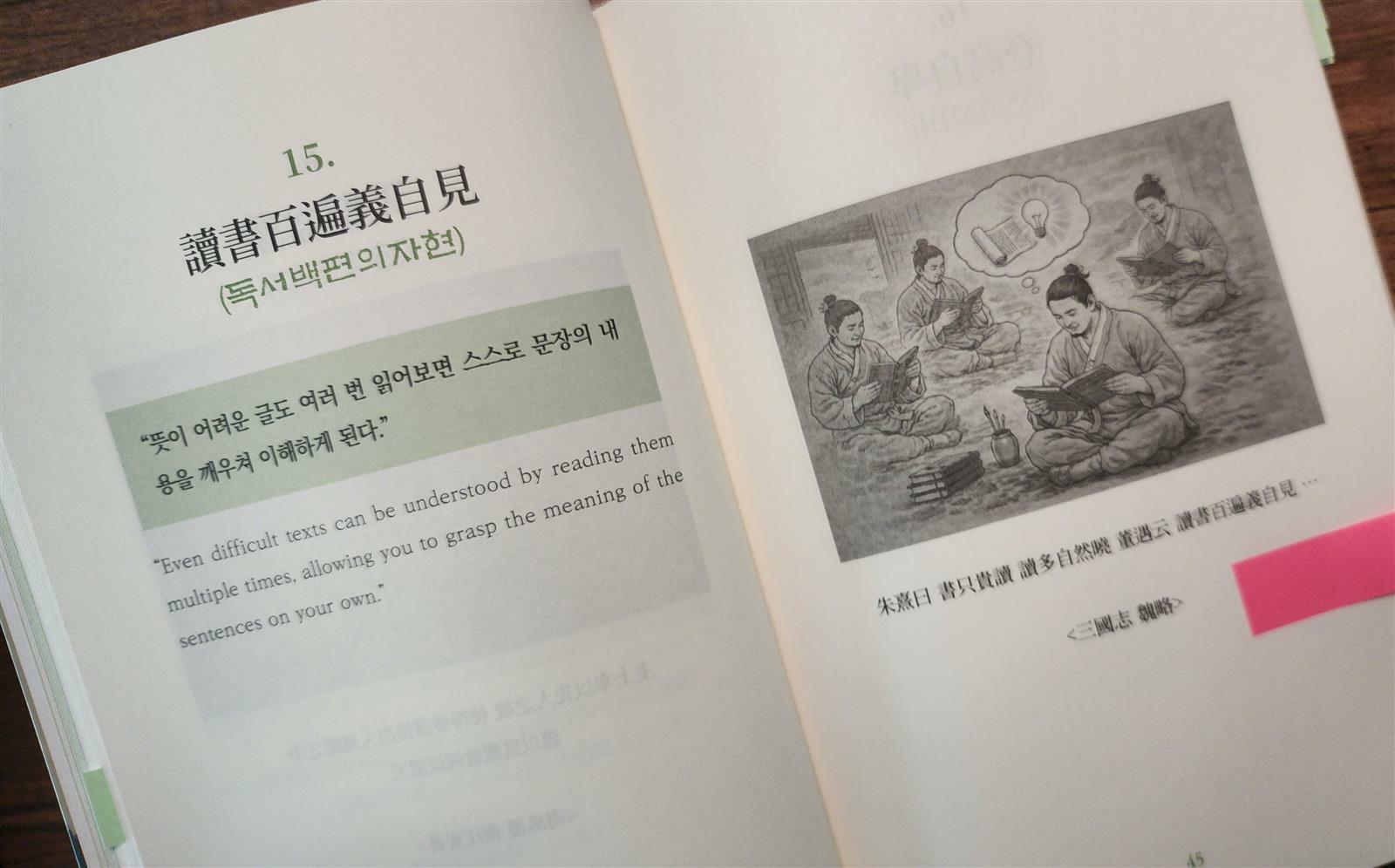 다만 아쉬움도 존재한다. 일부 성어의 출처가 되는 원문에 대한 해설이나 한자 풀이가 충분히 제시되지 않아, 한자에 익숙하지 않은 독자에게는 의미를 깊이 있게 이해하는 데 일정한 한계가 따른다. 원문 해석과 어휘에 대한 보충 설명이 더해졌다면 독서의 밀도는 한층 높아졌을 것이다.