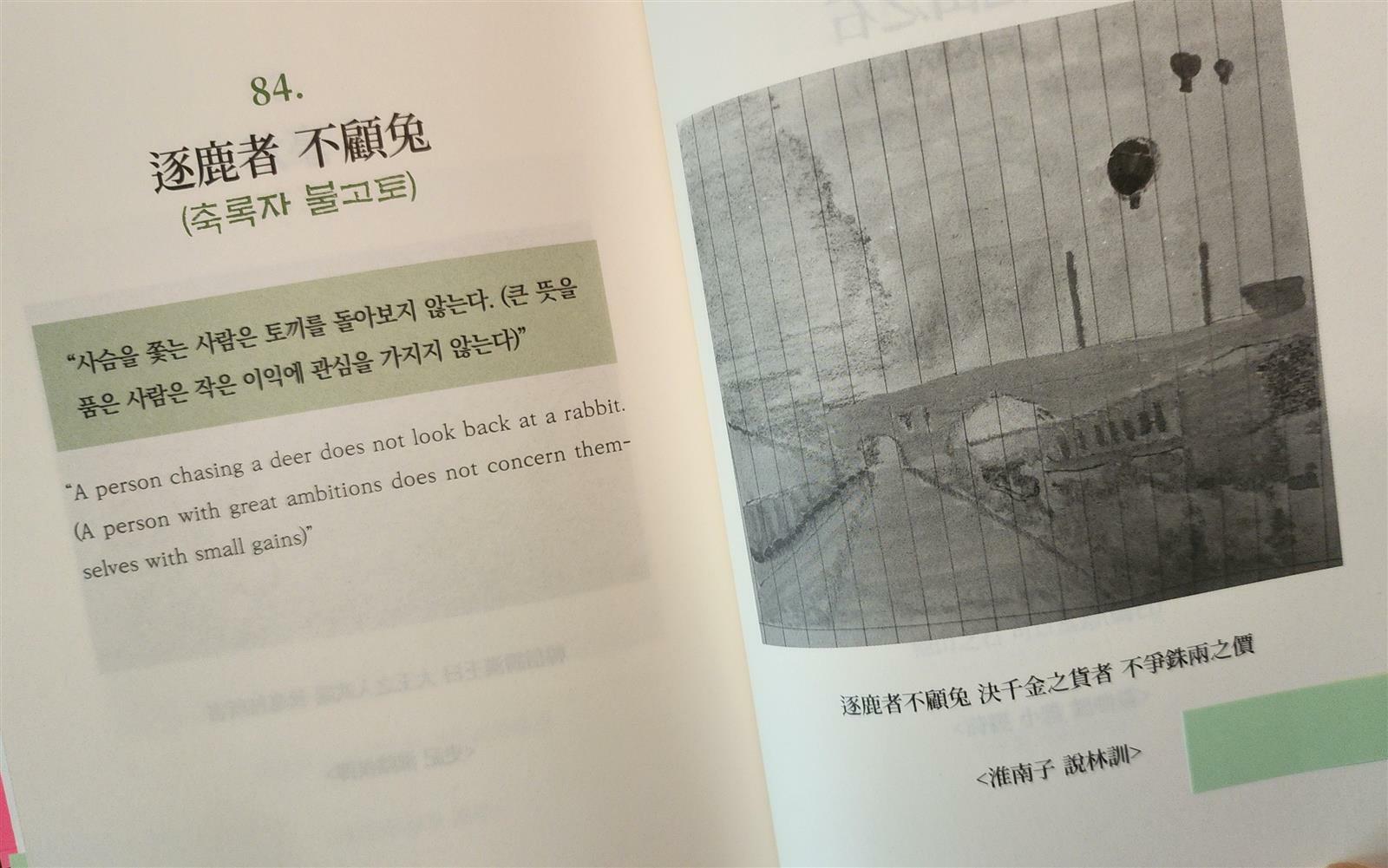아울러 각 고사성어에 영어 해설을 함께 수록한 점도 주목할 만하다. 이는 의미를 다른 언어로 다시 한번 환기시켜 주며, 독자의 이해도를 높이는 데 실질적인 도움을 준다. 특히 개념을 다층적으로 받아들이게 한다는 점에서 학습적 활용 가치도 크다.