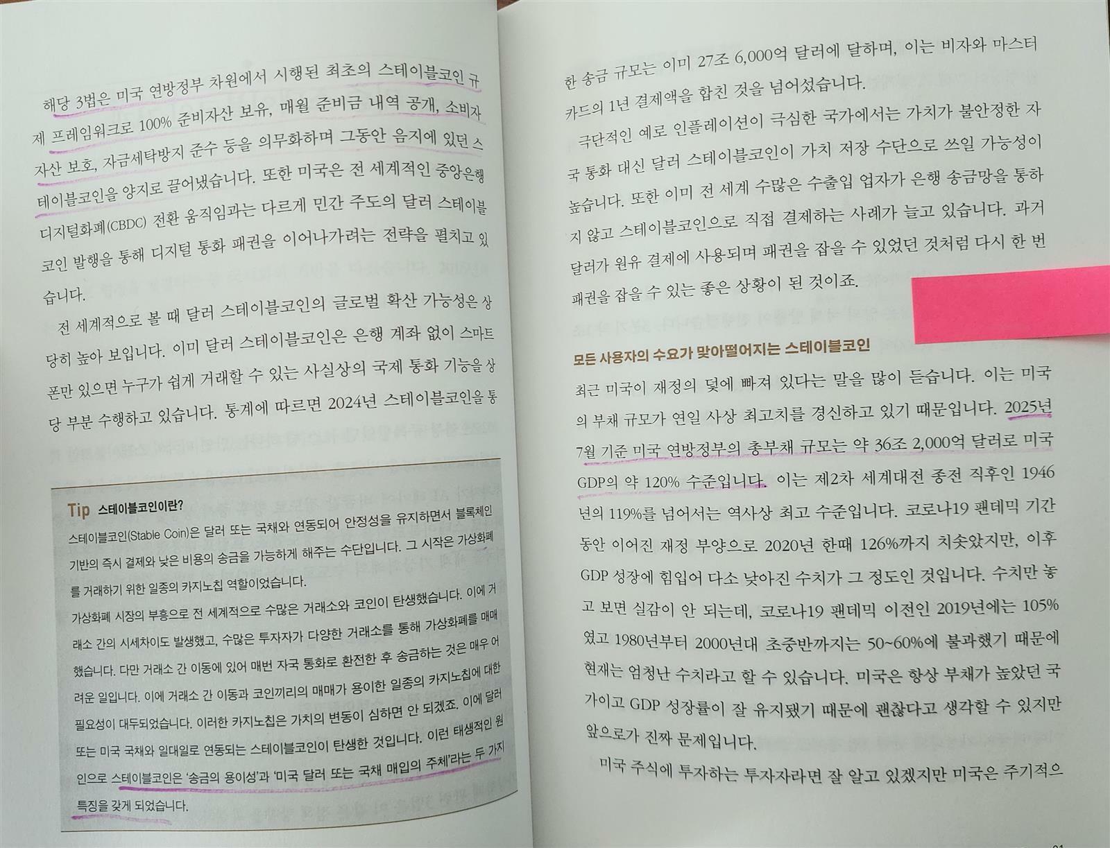<"스테이블코인은 '송금의 용이성'과 '미국 달러 또는 국채 매입의 주체'라는 두 가지 특징을 갖게 되었습니다." 책 80쪽>