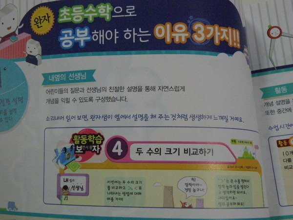 어린이들의 질문과 선생님의 친절한 설명을 통해 자연스럽게 개념을 익힐 수 있도록 하였고, 소리내어 읽어 보면, 완자샘이 옆에서 설명을 해 주는 것 처럼 생생하게 느껴지도록 내용 구성이 되어 있네요.