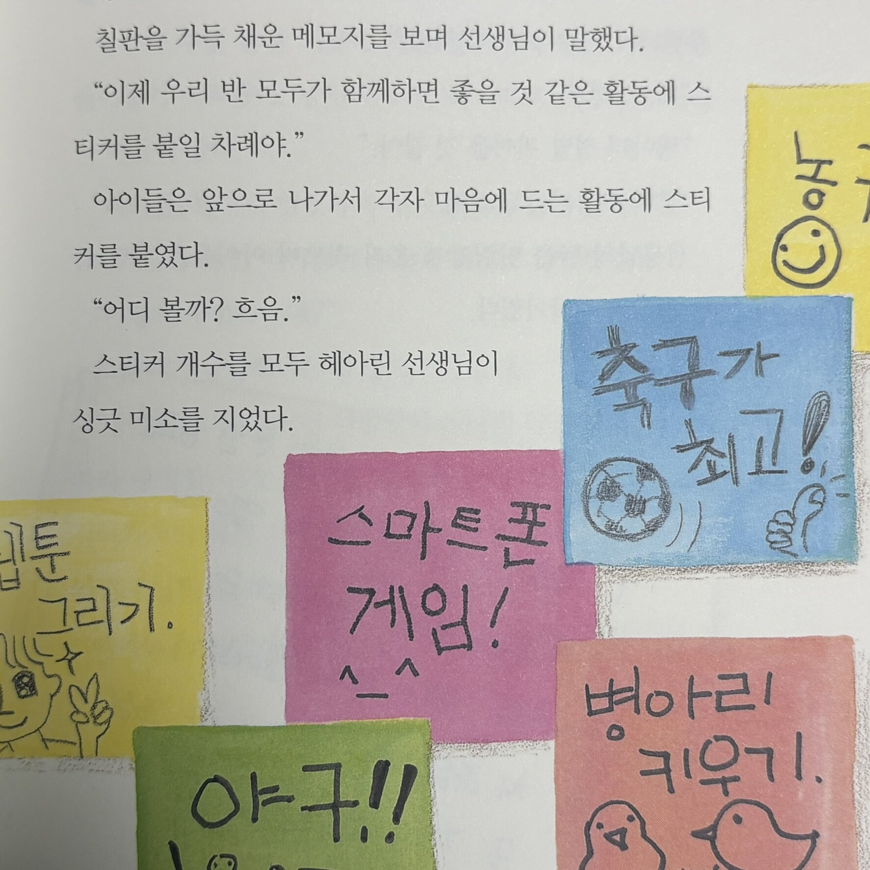 그리고 우리는 부른 배를 두드리며 우리 반 모두가 함께하고 싶은 일에 대해 이야기를 나누었다.