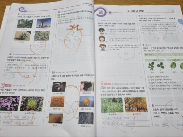 각 교과서출판사별로 단원의 순서가 조금씩 달라서 앞부분에 교과서출판사별로 다루고 있는 쪽수가 적혀 있어서 학교 교과서에 맞춰서 진행할 수 있어서 좋더라구요. 안나는 교과서별 쪽수가 백점과학과 비슷해서 백점과학 순서대로 진행하면 될거 같더라구요.