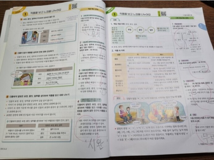 아이와 함께 풀어봅니다. 학교에서 공부한 내용을 복습개념으로 진행하면서, 한번 더 지문을 읽어보면서,