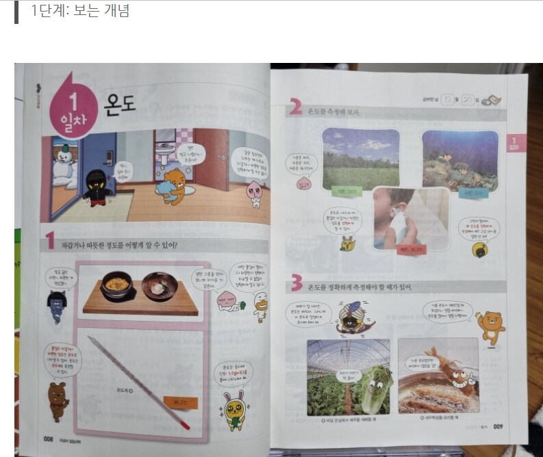 우공비 일일과학은 다양한 자료를 카카오프렌즈들이 나누는 대화를 보면서